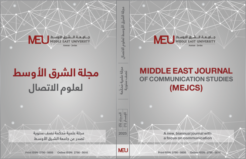 تُعد مجلة الشرق الأوسط لعلوم الاتصال (MEJCS)، والتي تحمل الرقم المعياري الدولي للنسخة المطبوعة (2790-5608) وللنسخة الإلكترونية (2790-5616)، مجلة علمية محكّمة تصدر بصفة نصف سنوية عن عمادة الدراسات العليا والبحث العلمي في جامعة الشرق الأوسط، وذلك منذ عام 2021 وبواقع عددين في كل عام. تُعنى المجلة بنشر البحوث العلمية الأصيلة والمبتكرة في مجال علوم الاتصال، وتستقبل الدراسات المكتوبة باللغتين العربية والإنجليزية، دون أن تفرض أي رسوم على النشر. وتتمتع المجلة بعضوية في قواعد بيانات علمية مرموقة، من بينها EBSCO ودار المنظومة، كما تضم هيئة استشارية ولجنة تحرير متخصصة تُشرف على عمليات التحكيم العلمي ومراجعة البحوث المقدمة، بما يضمن قبول الأعمال ذات القيمة العلمية ومتابعة إصدار المجلة بشكل منتظم.